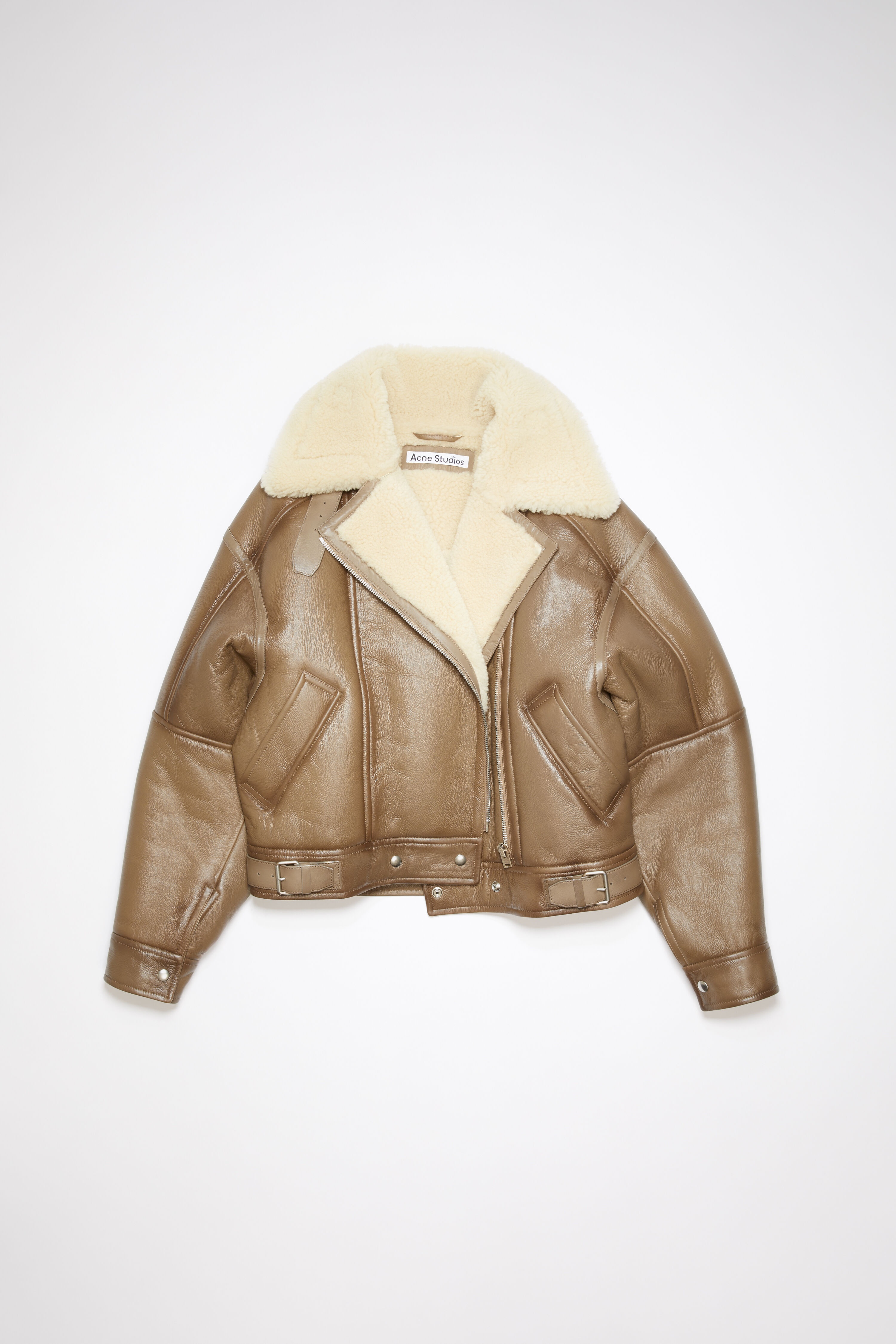 Leather shearling jacket - Brown/light camel