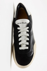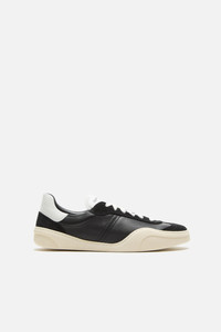 Lace-up leather sneakers with a minimalist design, crafted from leather and suede, featuring a black high-frequency logo on the tongue. - Lace-up leather sneakers - Seasonal logo - Branded soft soles - Sole height: 2 cm - Style ID: BARS DRAGO W - Uppers: 70% Lamb leather, 30% Calf leather, Lining: 100% Polyester, Soles: 100% Rubber