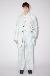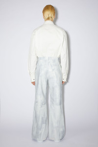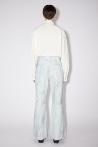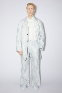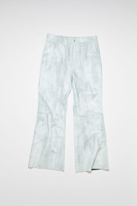 Acne Studios cold white trousers are crafted from leather with a painted effect, constructed entirely from excess fabrics and materials. Detailed with a seam above the knee, and complete with side seam pockets and jet back pockets. Cut to a regular silhouette with a high rise and long length. - Regular fit - High rise - Long length - Seam above the knee - Belt loops - Zipper fly - Side seam pockets - Back jet pockets - Full lining - Female model is 180 cm / 5′11″ and wears a size S - Male model is 183 cm / 6′1″ and wears a size M - Style ID: PS-UX-TROU000010 - Shell: 100% Lamb leather, Lining: 100% Viscose