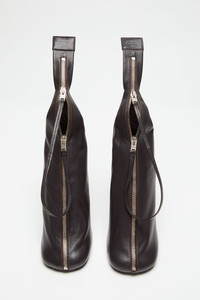 Heel ankle boots are crafted from leather and feature a double construction, an internal pump, and an external zipper closure construction with a connected strap. Constructed with a curved heel with a metal effect and round toe. - Double construction - Round toe - Curved heel measures 10 cm - Zipper closure with strap puller - Style ID: FN-WN-SHOE000955 - Uppers: 100% Preferred lamb leather, Lining: 100% Preferred lamb leather, Soles: 60% Cow leather, 40% Rubber