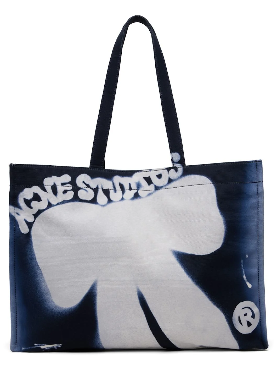 Cotton canvas tote. · Fading and printed graphic pattern throughout · Fixed twin shoulder straps · Logo printed at face · Lanyard-clasp closure · Zip and patch pocket at interior · Twill lining · H13" x W18" x D7" Supplier color: Navy blue Body: 100% cotton. Lining: 65% polyester, 35% cotton. Made in Italy 261129F049004