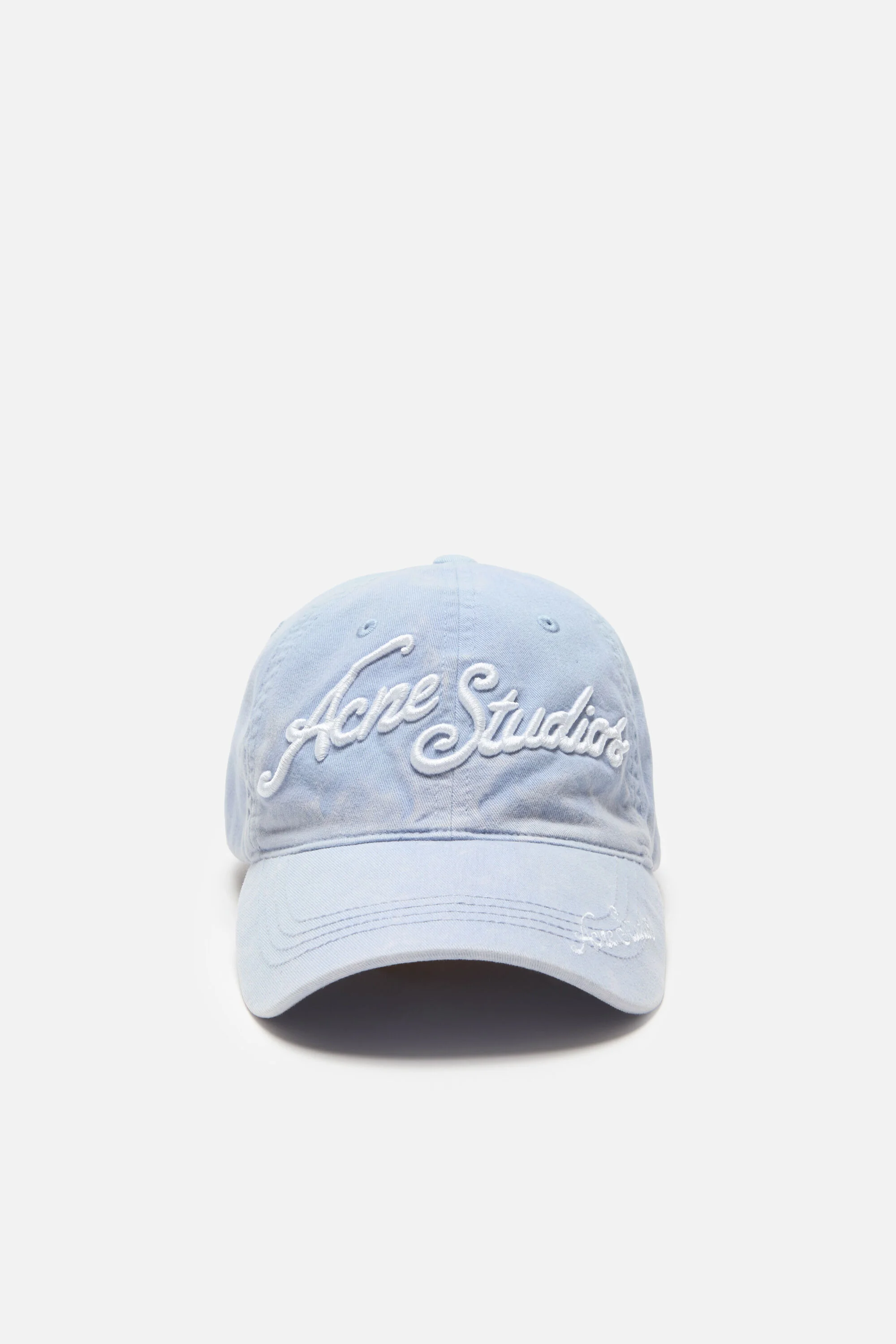 Baseball cap features a seasonal Acne Studios 3-D embroidered logo, crafted from washed twill cotton and detailed with an adjustable D-ring. - Embroidered logo - Curved brim - Adjustable d-ring closure - Embroidered eyelets - Measurements: 59 cm - Style ID: FN-UX-HATS000339 - Made from organically grown cotton - Shell: 100% Cotton, Lining: 100% Cotton