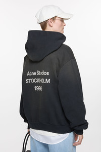 Hooded sweater is cut to a relaxed unisex fit. Crafted from a fleece cotton blend with a vintage sprayed effect. Detailed with an Acne Studios 1996 logo. - Relaxed unisex fit - Hooded - Sprayed finish - Logo at the back Acne Studios 1996 - Distressed details at the cuffs and hem - Female model is 176 cm / 5′10 and wears a size S - Model is 188 cm / 6′2 and wears a size M - Style ID: FN-UX-SWEA000020 - Made with organically grown cotton and recycled polyester. - Shell: 89% Organic cotton, 11% Recycled polyester
