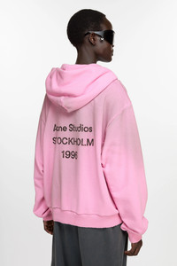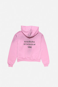 Hooded sweater is cut to a relaxed unisex fit. Crafted from a fleece cotton blend with a vintage sprayed effect. Detailed with an Acne Studios 1996 logo. - Relaxed unisex fit - Hooded - Sprayed finish - Logo at the back Acne Studios 1996 - Distressed details at the cuffs and hem - Female model is 180 cm / 5′11 and wears a size S - Model is 188.5 cm / 6′2 and wears a size M - Style ID: FN-UX-SWEA000020 - Made with organically grown cotton and recycled polyester. - Shell: 89% Organic cotton, 11% Recycled polyester