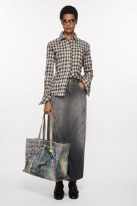 Logo tote bag features an all-over seasonal trompe l'oeil denim print on canvas cotton, detailed with an Acne Studios embossed logo on the front panel. Complete a small zippered interior compartment and shoulder straps. - Trompe l'oeil print denim effect - Embossed Acne Studios logo - Small zippered compartment - Acne Studios pink label - Hand straps - Shoulder straps - Measurements: 47 cm x 35 cm x 17 cm - Shoulder strap measurement: 30 cm approx. - Style ID: FN-UX-BAGS000189 - Shell: 100% Cotton, Lining: 65% Recycled polyester, 35% Organic cotton