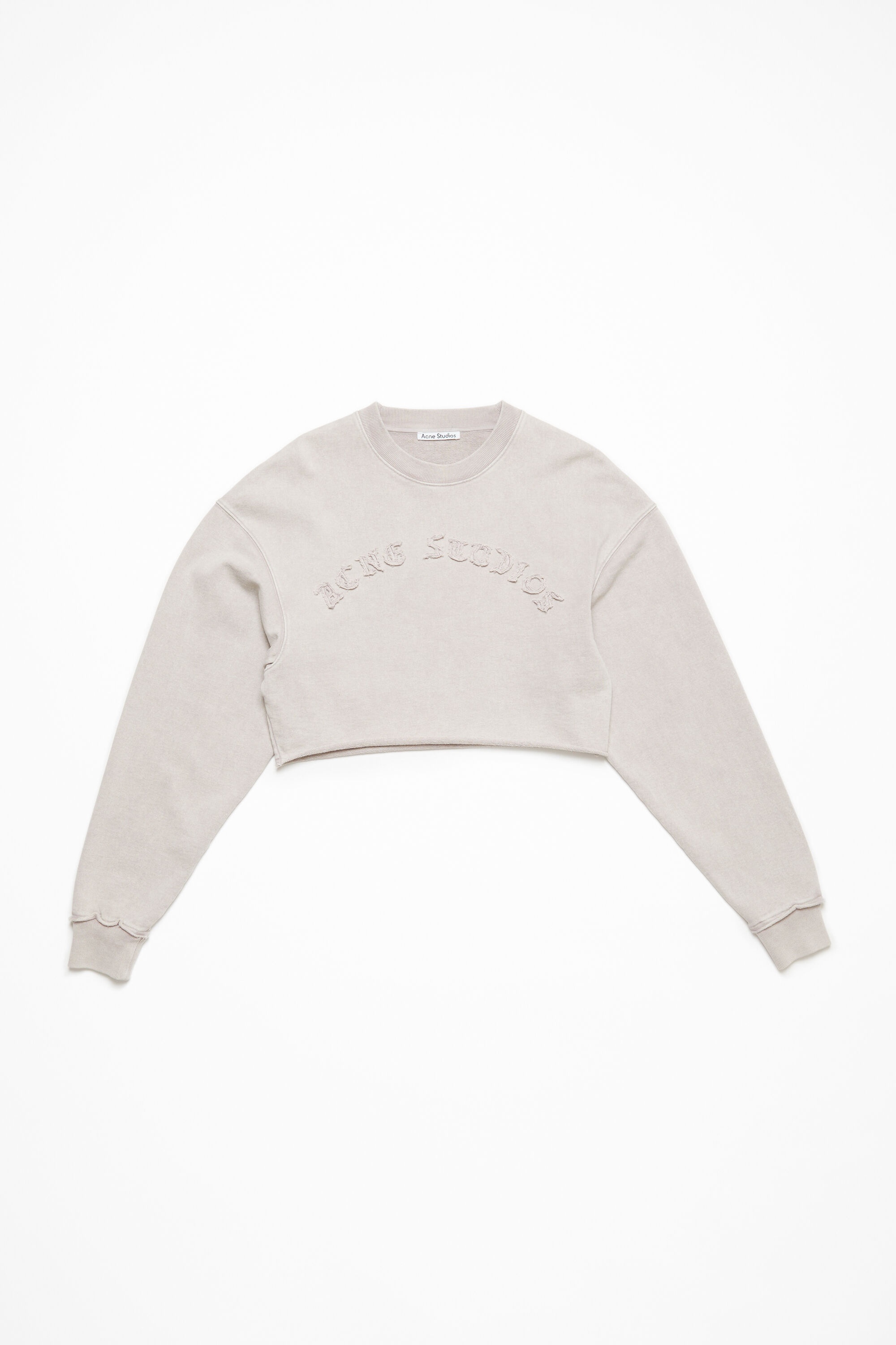 Crew neck sweater features a seasonal logo artwork at the front with raw hem details. Cut to a relaxed fit with dropped shoulders and waist length. - Relaxed fit - Dropped shoulders - Waist length - Acne Studios seasonal logo - Raw hem - Ribbed neckline and cuffs - Female model is 177 cm / 5'10 and wears a size S - Style ID: FN-WN-SWEA000246 - Made from organically grown cotton.