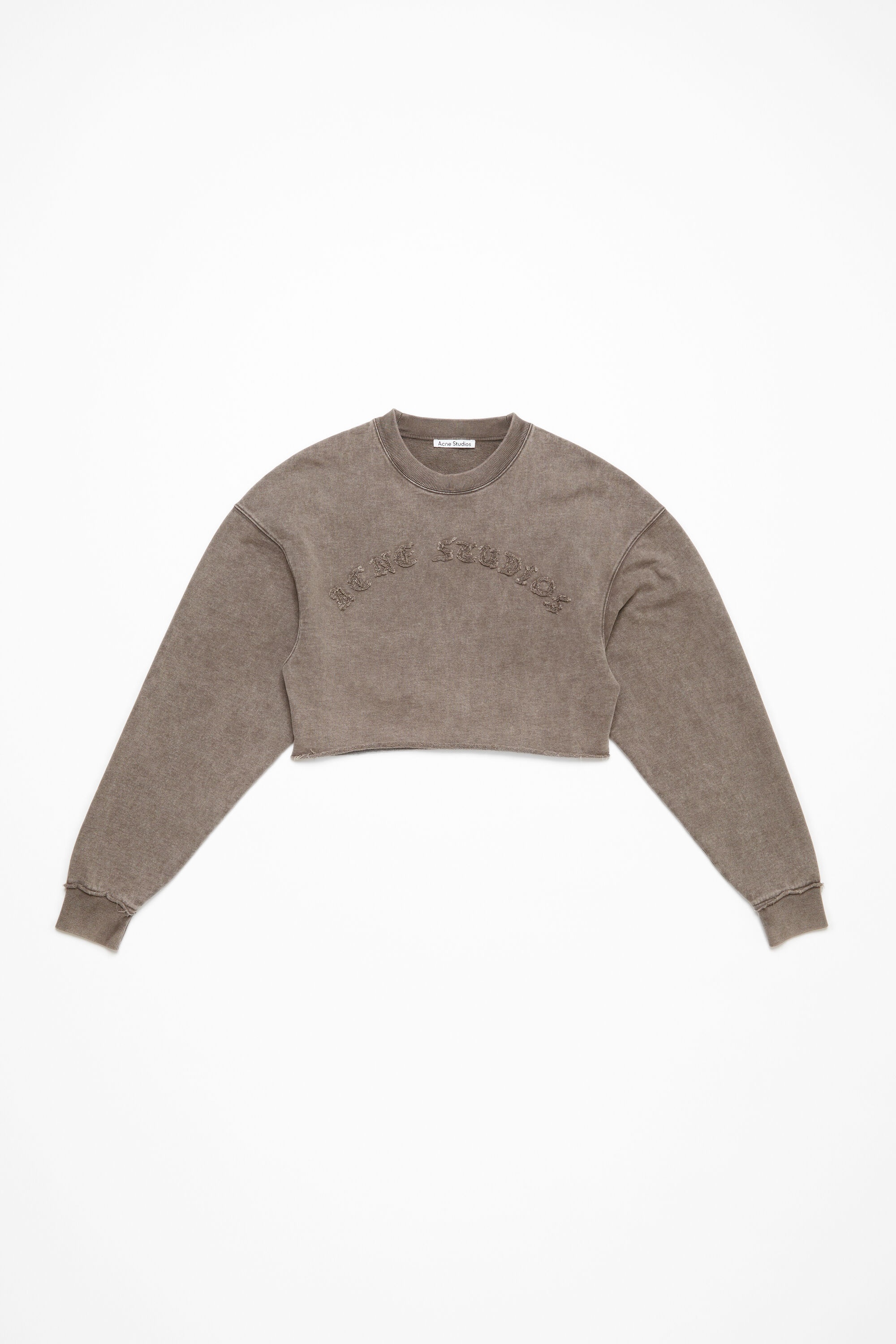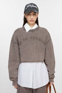 Crew neck sweater features a seasonal logo artwork at the front with raw hem details. Cut to a relaxed fit with dropped shoulders and waist length. - Relaxed fit - Dropped shoulders - Waist length - Acne Studios seasonal logo - Raw hem - Ribbed neckline and cuffs - Female model is 177 cm / 5'10 and wears a size S - Style ID: FN-WN-SWEA000246 - Made from organically grown cotton.