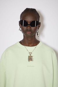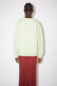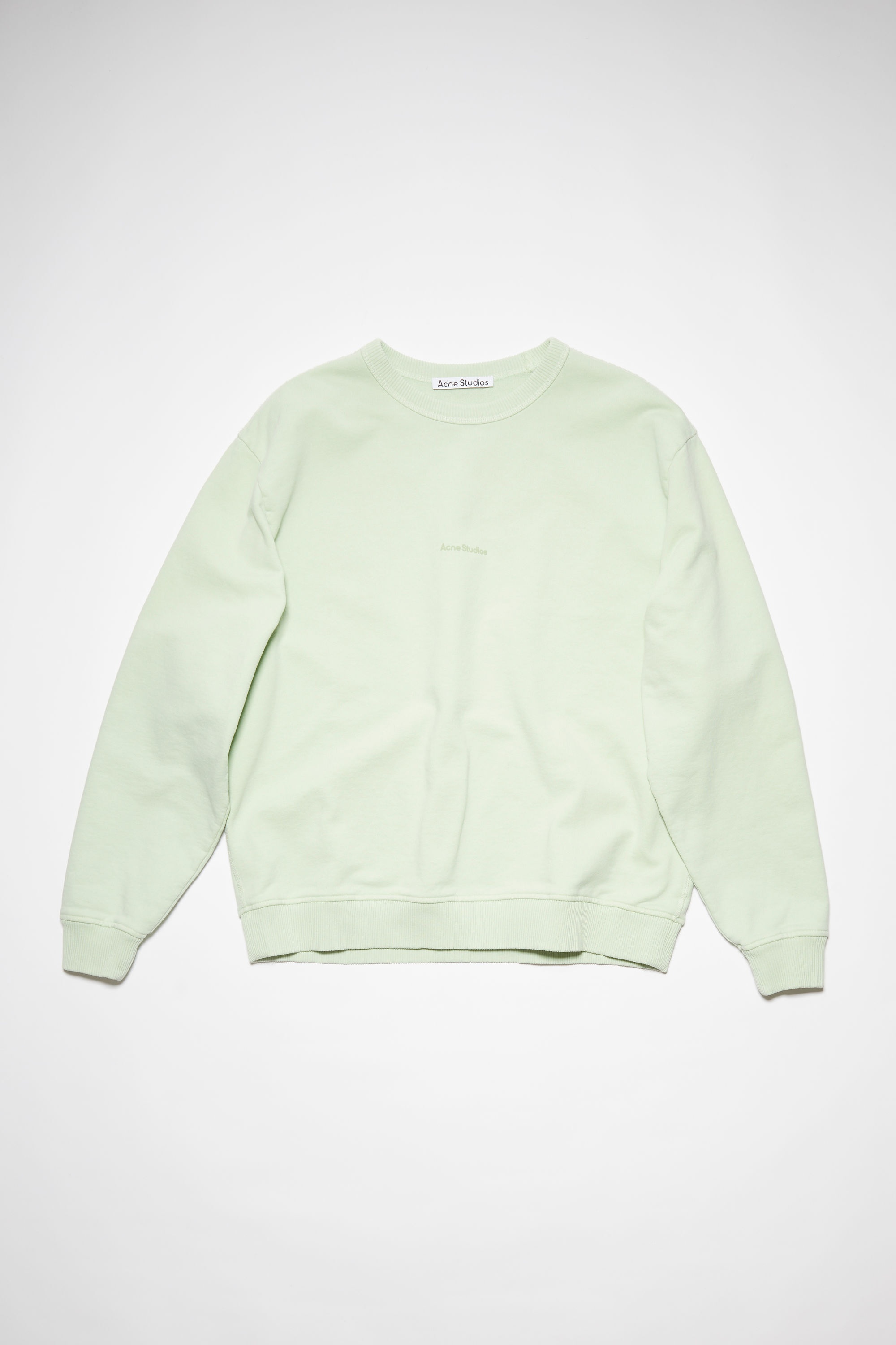 Acne Studios pastel green crew neck sweatshirt features a logo print on the front and is cut to a relaxed fit. Completed with ribbed details on the neck, cuffs and hem, and crafted heavyweight fleece made of cotton with a pigment-dyed appearance. - Relaxed fit - Hits below hip - Heavyweight fleece with pigment-dyed appearance - Ribbed crew neck, cuffs, and hem - Flatlock stitching at shoulder and side seams - Acne Studios logo print - Model is 178cm/ 5'8" and wears a size S - Style ID: FN-WN-SWEA000130 - Main material made from organically grown cotton - Shell: 100% Cotton