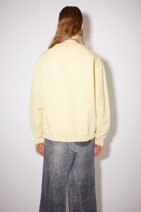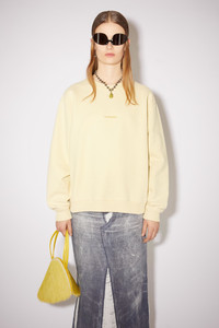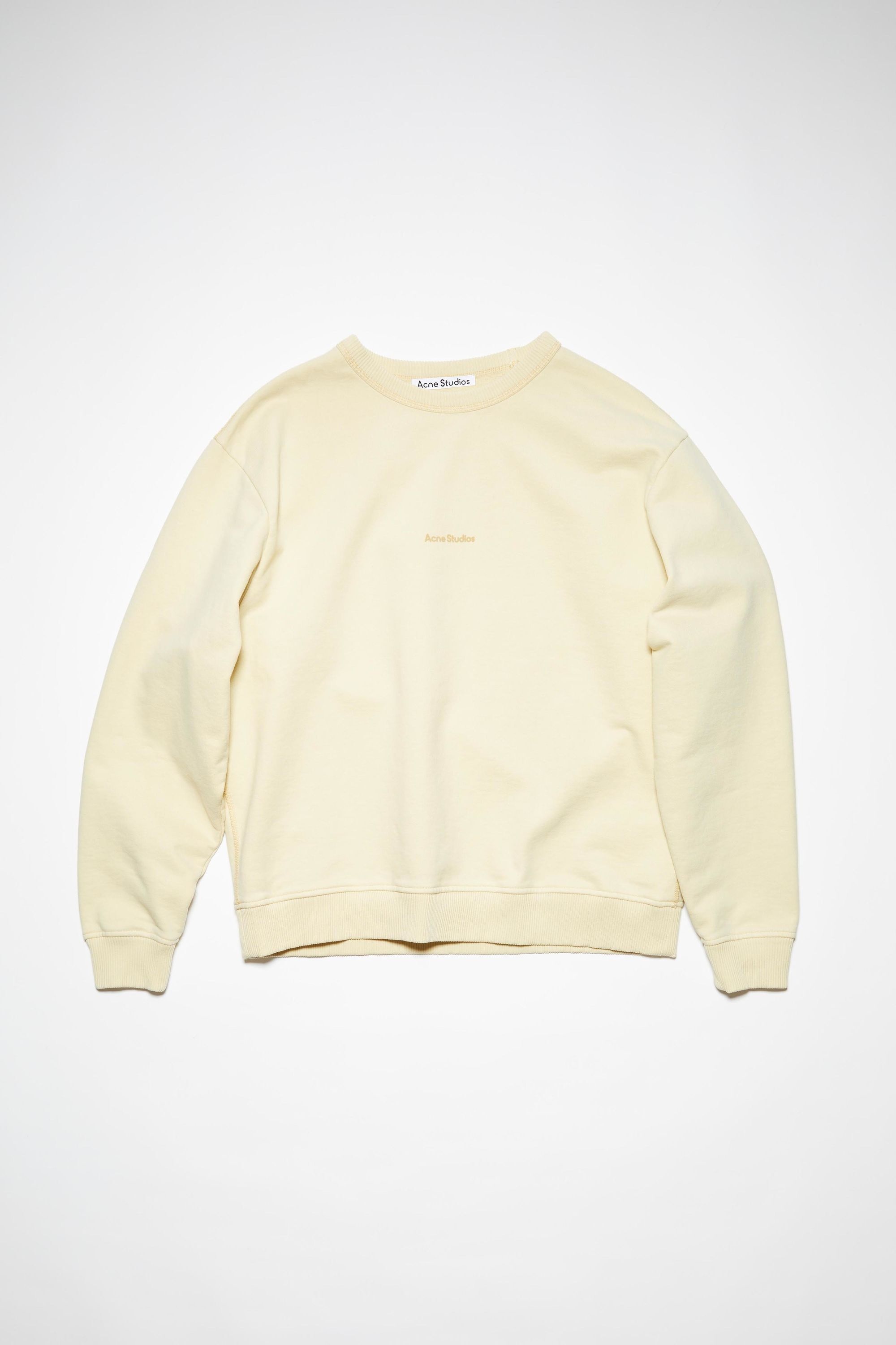 Acne Studios vanilla yellow crew neck sweatshirt features a logo print on the front and is cut to a relaxed fit. Completed with ribbed details on the neck, cuffs and hem, and crafted heavyweight fleece made of cotton with a pigment-dyed appearance. - Relaxed fit - Hits below hip - Heavyweight fleece with pigment-dyed appearance - Ribbed crew neck, cuffs, and hem - Flatlock stitching at shoulder and side seams - Acne Studios logo print - Model is 178cm/ 5'8" and wears a size S - Style ID: FN-WN-SWEA000130 - Main material made from organically grown cotton - Shell: 100% Cotton