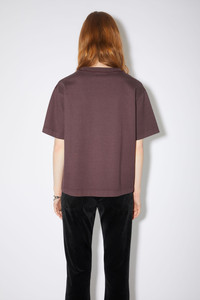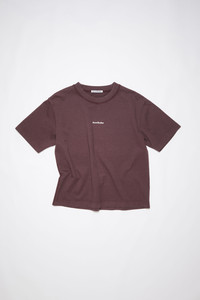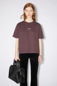 Acne Studios aubergine purple white crew neck t-shirt features a branded logo at the centre front and is cut to regular fit. - Regular fit - Hip length - Ribbed crew neck - Flatlock stitching at shoulder and side seams - Acne Studios logo - Model is 180cm/ 5'9" and wears a size S - Style ID: FN-WN-TSHI000196 - Main material made from organically grown cotton - Shell: 100% Cotton