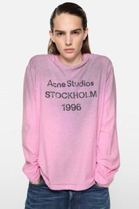 Long sleeve t-shirt is cut to a relaxed unisex fit and hip length. Detailed with an Acne Studios 1996 stamp logo, distressed neckline, cuffs and hem. Crafted from cotton with a sprayed finish. - Relaxed unisex fit - Hip length - Crew neck - Sprayed finish - Stamp logo 'Acne Studios Stockholm 1996' - Distressed neckline, cuffs and hem - Female model is 180 cm / 5’11” and wears a size S - Male model is 188.5 cm / 6′2″ and wears a size XS - Style ID: FN-UX-TSHI000016 - Made from organically grown cotton. - Shell: 85% Organic cotton, 15% True hemp