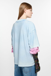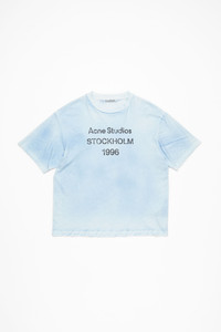 Crew neck t-shirt is cut to a relaxed unisex fit. Detailed with an Acne Studios 1996 stamp logo, distressed neckline, cuffs and bottom hem. Crafted from cotton with a sprayed vintage finish. - Relaxed unisex fit - Crew neck - Sprayed - Acne Studios 1996 logo - Female model is 179 cm / 5′11 and wears a size XS - Male model is 187 cm / 6′2 and wears a size XS - Style ID: FN-UX-TSHI000013 - Made from organically grown cotton. - Shell: 85% Organic cotton, 15% True hemp