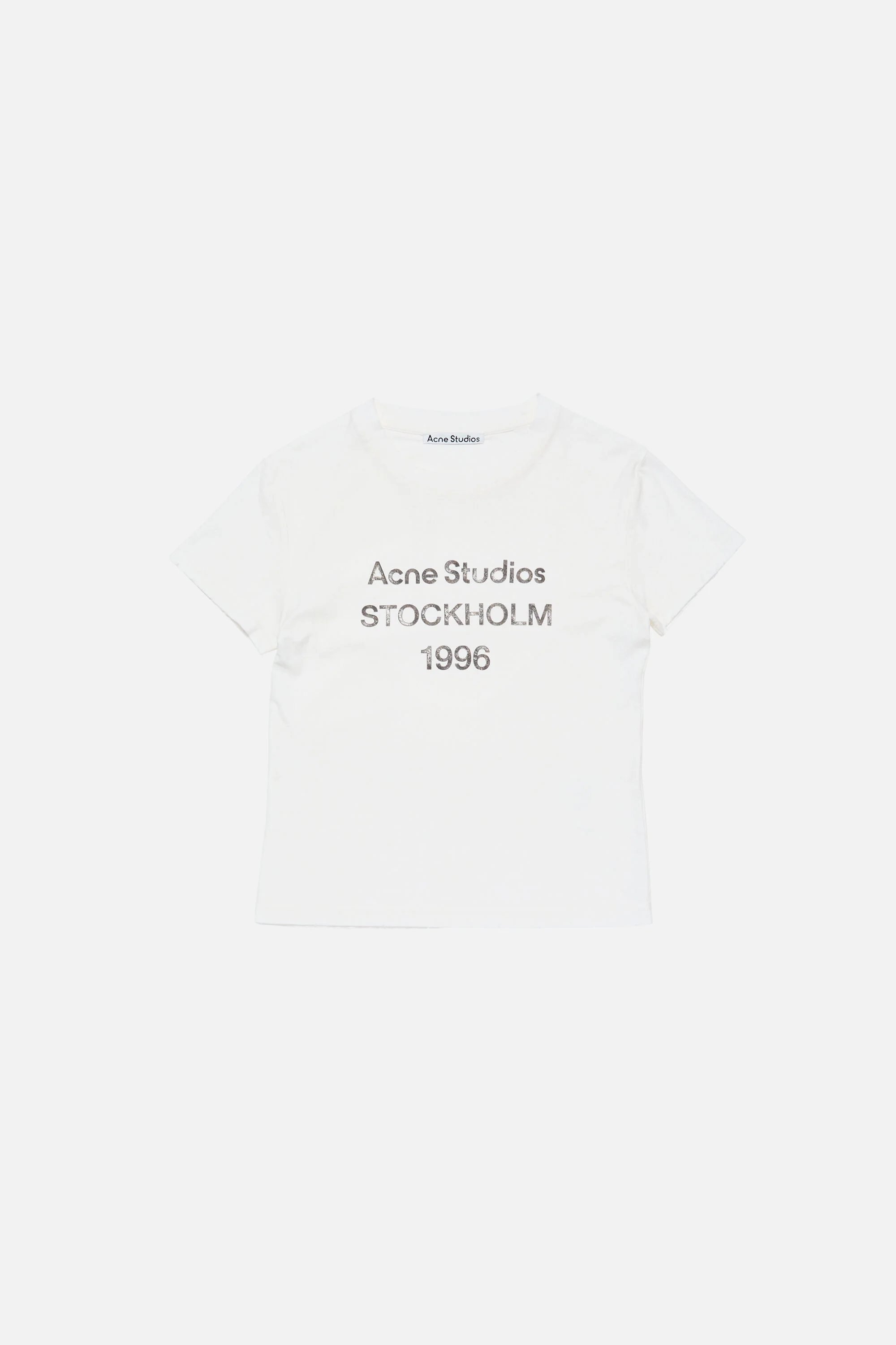 Crew neck t-shirt features Acne Studios 1996 logo at the front and distressed details on neck, arm and hem. Crafted from organically grown cotton and hemp blend. Cut to a regular fit and hip length. - Regular fit - Hip length - Logo animation Acne Studios 1996 - Female model is 178 cm / 5'8" and wears a size XS - Male model is 189 cm / 6'2" and wears a size M - Style ID: FN-UX-TSHI000149 - Made from organically grown cotton - Shell: 85% Organic cotton, 15% True hemp