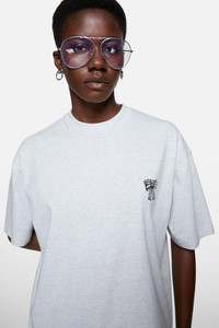 Short-sleeve crewneck T-shirt crafted from lightweight organic cotton melange jersey, featuring a seasonal Acne Studios logo with bow motif on the chest. Cut to a relaxed unisex fit. - Crewneck T-shirt - Relaxed unisex fit - Seasonal Acne Studios logo with bow motif - Female model is 178 cm / 5'8 and wears a size S - Male model is 188 cm / 6'2 and wears a size M - Style ID: FN-UX-TSHI000292 - Made with organically grown cotton - Shell: 100% Cotton