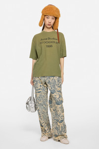 Crew neck t-shirt is cut to a relaxed unisex fit. Detailed with an Acne Studios 1996 stamp logo, distressed neckline, cuffs and bottom hem. Crafted from cotton with a sprayed vintage finish. - Relaxed unisex fit - Crew neck - Sprayed - Acne Studios 1996 logo - Female model is 179 cm / 5′11 and wears a size XS - Male model is 187 cm / 6′2 and wears a size XS - Style ID: FN-UX-TSHI000013 - Made from organically grown cotton. - Shell: 85% Organic cotton, 15% True hemp