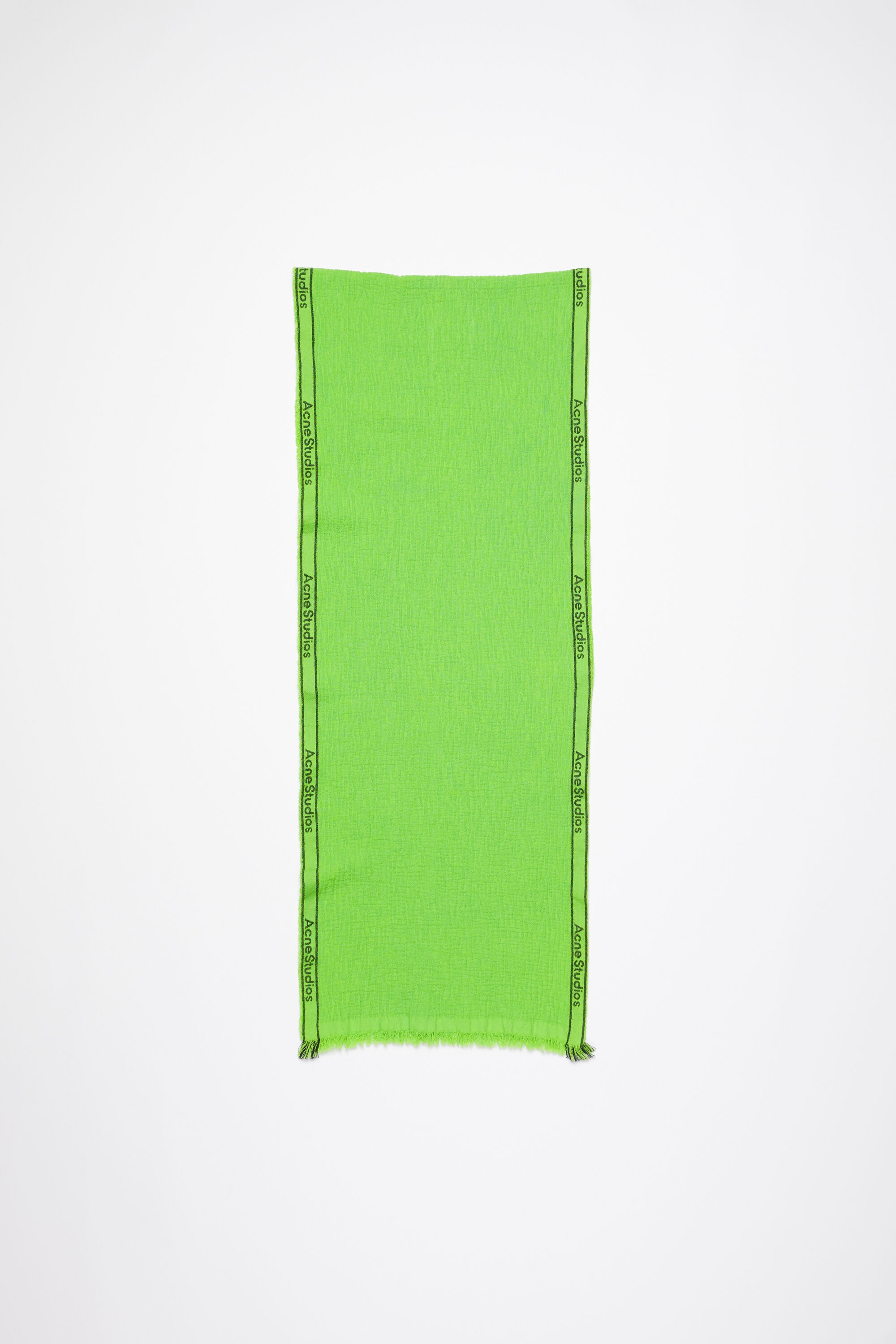 Scarf features a seasonal Acne Studios logo print across the edges, crafted from a cotton and linen blend with a rustic hand feel and short frayed ends. - Logo print - Short frayed ends - Measurements: 40 cm; 200 cm - Style ID: FN-UX-SCAR000339 - Shell: 70% Cotton, 30% Linen