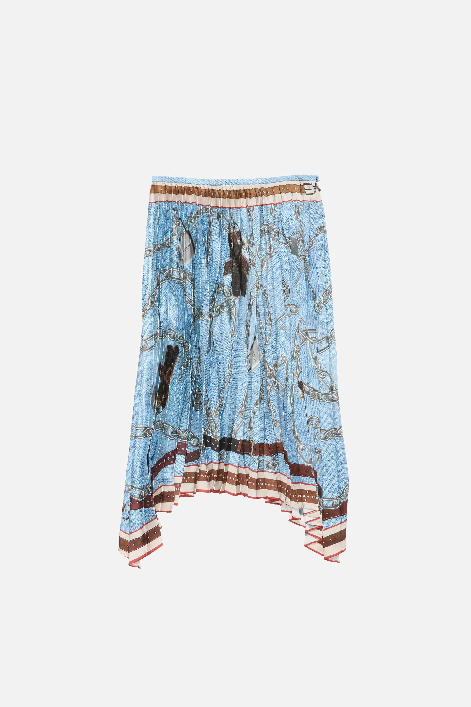 Long pleated skirt crafted from fluid fabric with a seasonal artwork print. Features an elasticated waistband and invisible zip and button closure. Cut to a regular fit. - Long pleated skirt - Regular fit - Seasonal artwork print - Elasticated waistband - Invisible zip and button closure - Model is 179 cm / 5'9 and wears a size 36 - Style ID: FN-WN-SKIR000912 - Shell made from recycled polyester - Shell: 100% Polyester