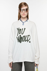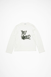 Long sleeve t-shirt is cut to a relaxed unisex fit and hip length. Crafted in a jersey cotton and detailed with a 'YOU WOULD.' sprayed finish animation. - Relaxed unisex fit - Hip length - Crew neck - 'You would' sprayed animation - Female model is 180 cm / 5’11” and wears a size S - Male model is 188 cm / 6′2″ and wears a size M - Style ID: FN-UX-TSHI000138 - Shell: 100% Cotton