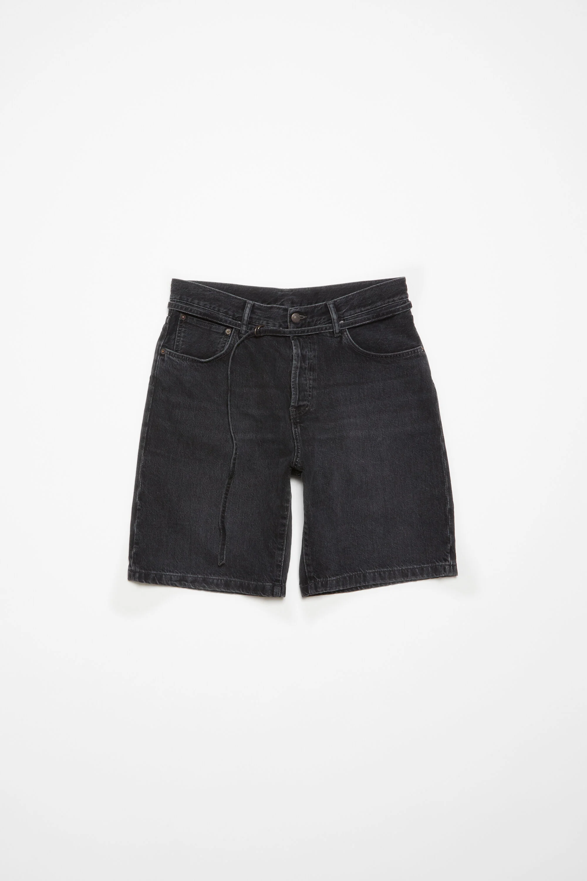 Shorts are cut to a loose unisex fit with a low to mid-waist, matching thin belt, straight leg and knee length. Made of non stretch denim in black wash with a vintage finish. - Loose fit - Low to mid waist - Straight leg - Knee length - Thin belt - 5-pocket construction - Button fly - Female model is 177 cm/ 5'11" and wears a size XS - Model is 188 cm / 6′2 and wears a size M - Style ID: FN-UX-SHOR000012 - Made from organically grown cotton. - Shell: 100% Cotton, Patch: 100% Cow leather