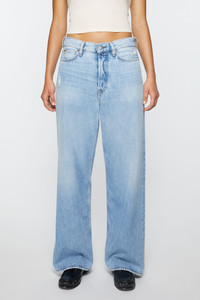 1981F jeans are cut to a loose fit with a low waist, wide leg and long length. Crafted from non-stretch denim in a light blue wash. - Loose fit - Low waist - Wide leg - Long length - 5-Pocket construction - Button fly - Model is 180 cm / 5′11 and wears a size 36 - Style ID: Acne Studios 1981F FN Light Blue Vintage - Made from organically grown cotton. - Shell: 100% Cotton, Patch: 100% Cow leather