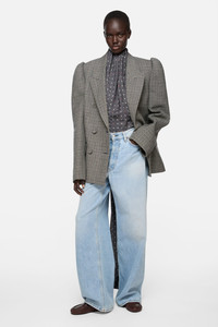 1981M jeans are cut to a baggy fit with a low waist, wide leg and long length. Crafted from non stretch denim in a light blue wash. - Baggy fit - Low waist - Wide leg - Long length - 5-Pocket construction - Button fly - Female model is 180 cm / 5′9" and wears a size Large, Regular, corresponds to a size 40 and denim 30 - Male model is 188 cm / 6'2" and wears a size Small, Regular, corresponds to a size 46 and denim 29 - Style ID: Acne Studios 1981 U Light Blue Vintage - Shell: 100% Organic cotton, Patch: 100% Cow leather