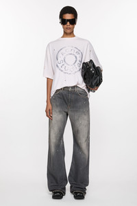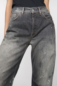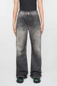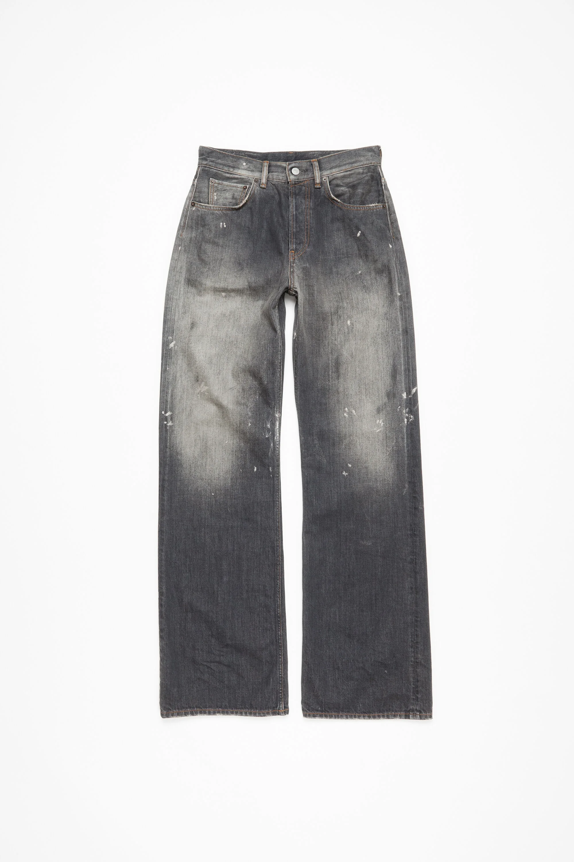 2021 jeans are cut to a loose fit with mid-waist, wide leg and long length. Made from rigid denim in a dark wash with tinted and painted mark detailings. - Loose fit - Mid waist - Wide leg - Long length - 5-pocket construction - Button fly - Made in Italy - Model is 177 cm / 5'11 and wears a size 27/34 - Style ID: Acne Studios 2021F Black Trafalgar - Made from organically grown cotton. - Shell: 100% Cotton, Patch: 100% Cow leather
