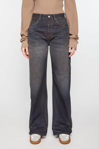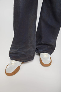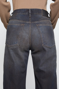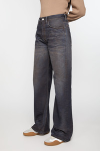 2021 jeans are cut to a loose fit with a mid waist, wide leg and long length. Crafted from non stretch denim in a dark blue with a leather logo patch. - Loose fit - Mid waist - Wide leg - Long leg - Leather logo patch - 5-Pocket construction - Button fly - Model is 179cm/ 5'11 and wears a size 27/34 - Style ID: Acne Studios 2021F Darkside - Made with 80% organically grown cotton and 20% recycled cotton. - Shell: 100% Cotton, Patch: 100% Cow leather