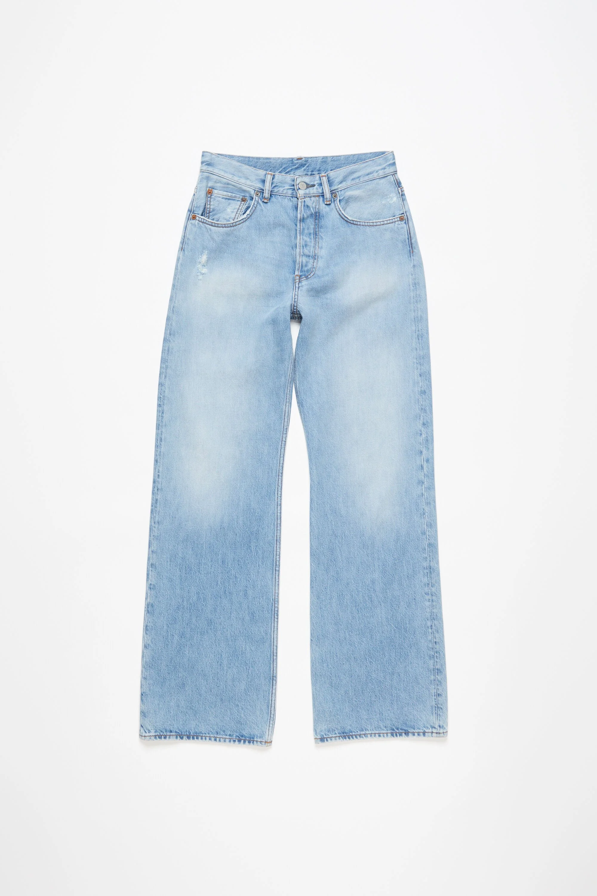 2021 jeans are cut to a loose fit with mid-waist, wide leg and long length. Made from rigid denim in light blue wash. - Loose fit - Mid waist - Wide leg - Long length - This item runs large, we recommend choosing a size down - 5-pocket construction - Button fly - Model is 179cm/ 5'11 and wears a size 27/34 - Style ID: Acne Studios 2021F Light Blue Trash Eco - Made from organically grown cotton - Shell: 100% Cotton, Patch: 100% Cow leather