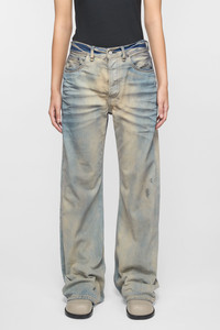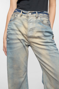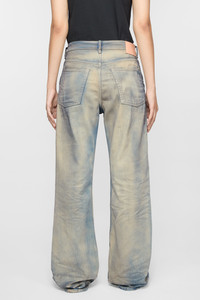 2021 jeans are cut to a loose fit with mid-waist, wide leg and long length. Made from rigid denim in light blue wash strong irregular contrast wash with a mineral tint. - Loose fit - Mid waist - Wide leg - Long length - Back leather logo patch - 5-pocket construction - Button fly - Made in Italy - Model is 177 cm / 5'11 and wears a size 27/34 - Style ID: Acne Studios 2021F Carver - Made with 80% organically grown cotton and 20% recycled cotton. - Shell: 100% Cotton, Patch: 100% Cow leather