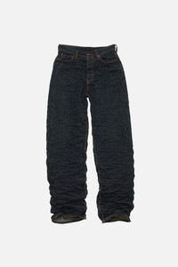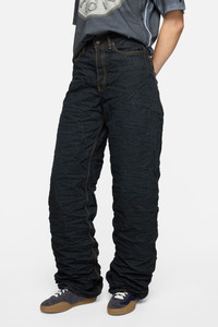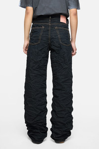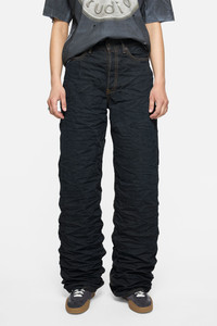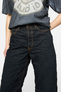 1981 jeans are cut to a loose fit with a low to mid-rise waist, wide, baggy leg and long length. Crafted from non-stretch denim with a black mineral resin finish, featuring baked-in creases for a set-in, worn effect. - Loose fit - Low to mid-rise waist - Wide, baggy leg - Long length - Creased finish - Every garment will differ. Creases have a limited lifespan. - Leather logo patch - 5-Pocket construction - Button fly - Female model is 180 cm / 5'9 and wears a size Small, Regular corresponds to a size 36 and denim 27 - Male model is 188 cm / 6′2 and wears a size Small, Regular corresponds to a size 46 and denim 29 - Style ID: ACNE STUDIOS 1981 U CRUNCH - Made with organically grown cotton - Shell: 100% Cotton, Patch: 100% Cow leather
