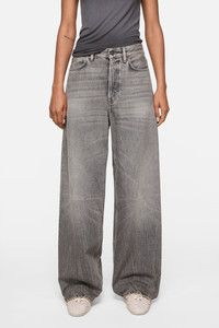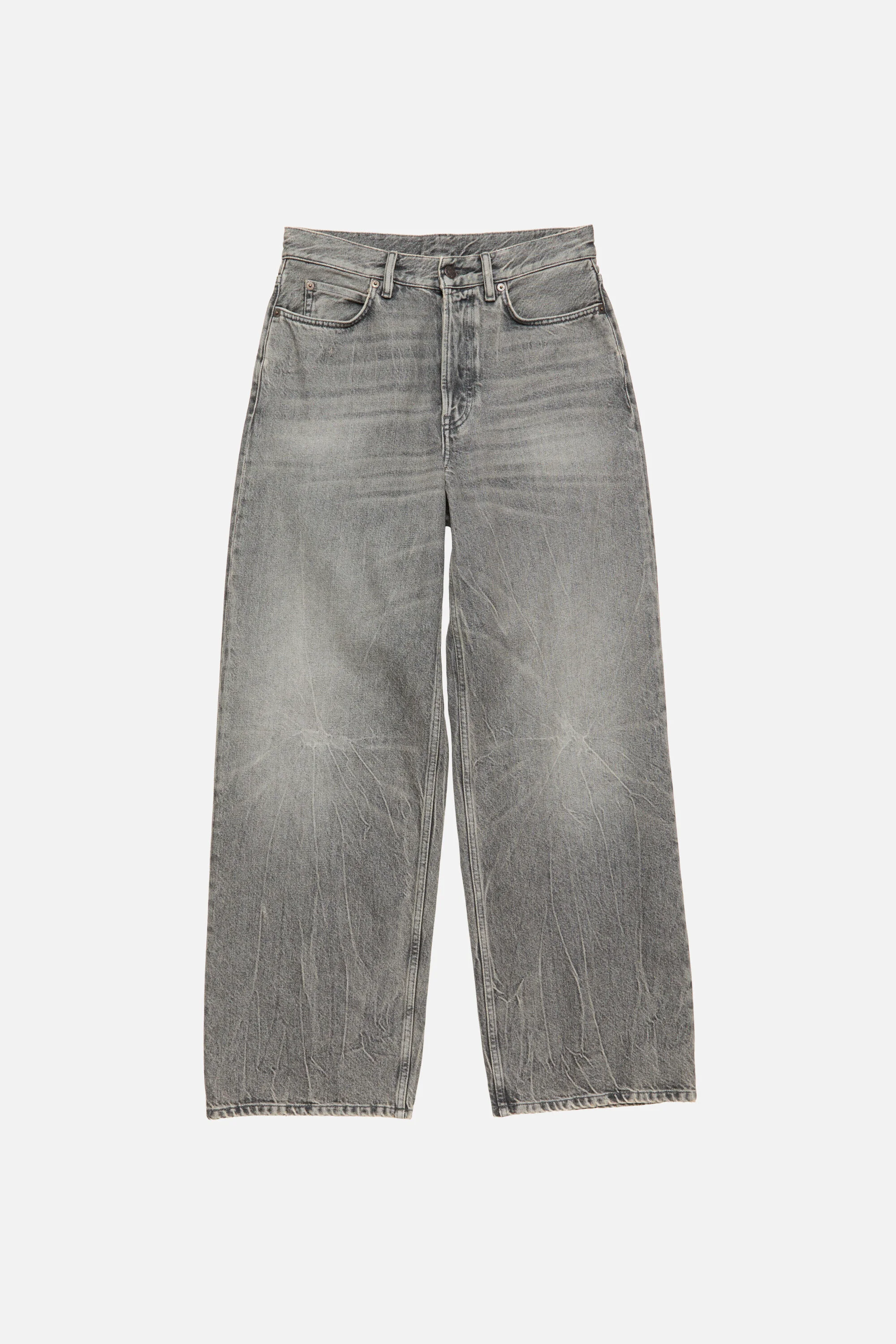 Jeans feature a mid-tone eco wash with ragged and tied effects on loose-constructed black denim, making each garment unique. 1981 jeans are cut to a loose fit with a low to mid waist, long length, wide baggy leg, and finished with a button fly. - Loose fit - Low to mid waist - Long length - Wide baggy leg - 5-pocket construction - Button fly - Female model is 178 cm / 5'8 and wears Small/Regular: size 36, denim 27 waist/32–34 length. - Male model is 188 cm / 6'1 and wears Small/Regular: size 46, denim 29 waist/32–34 length. - Unisex jeans are designed to sit low on the waist. For a higher rise, we recommend selecting one size down. - Style ID: Acne Studios 1981 U Gothik - Made with organically grown cotton - Shell: 82% Cotton, 18% Lyocell, Patch: 100% Cow leather