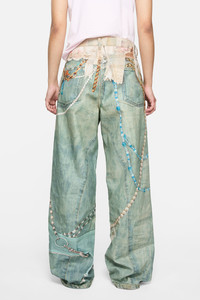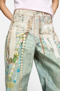 1981 jeans cut to a loose fit with a low to mid waist and a wide, baggy leg. Crafted from cotton canvas with a soft, textured finish, featuring a seasonal trompe-l’œil print of a keychain and lace detailing. - Loose fit - Low/mid waist - Wide, baggy leg - Seasonal trompe-l’œil print - Model is 189 cm / 6'2 and wears a size 46 - Style ID: FN-UX-TROU000047 - Made from organically grown cotton - Shell: 100% Cotton