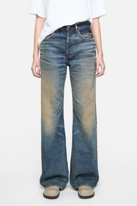 Jeans feature a strong contrast vintage wash with a coated tint on an indigo denim base, crafted from rigid denim made of a cotton blend. The 2021 jeans are cut to a loose fit with mid-waist, wide leg and long length. - Loose fit - Mid waist - Wide leg - Long length - 5-pocket construction - Button fly - Made in Italy - Model is 177 cm / 5'11 and wears a size 27/36 - Style ID: Acne Studios 2021F Rocka - Shell: 80% Organic cotton, 20% Recycled cotton, Patch: 100% Cow leather