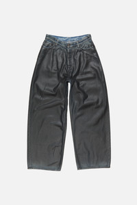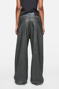 Jeans feature a pressed black leather finish on washed indigo Tencel denim. 2023 jeans are cut to a loose fit with a low waist, long length, super baggy leg, and button fly closure. - Loose fit - Low waist - Long length - Super baggy leg - 5-pocket construction - Button fly closure - Model is 186 cm / 6'1 and wears size Small/Regular: size 46, denim 29 waist/32–34 length - Style ID: Acne Studios 2023 U Charcoal Leather - Made with organically grown cotton - Shell: 40% Lyocell, 60% Cotton, Patch: 100% Cow leather