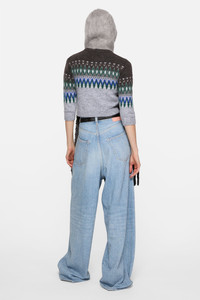 2023 jeans are cut to a loose fit with a low waist, super baggy leg, and long length. Crafted from a drapey cotton blend fabric, they feature an eco stonewash with mineral dye and a dirty tint. Finished with an all-over rhinestone crystal application applied after wash for a unique, textured surface. - Loose fit - Low waist - Super baggy leg - Long length - These jeans are an oversized style, size up for an even more exaggerated look. - Rhinestones - 5-Pocket construction - Button fly - Female model is 179 cm / 5′8 and wears a size Small, Regular corresponds to a size 36, denim 27-28 - Male model is 180 cm / 5′11 and wears a size Small, Regular corresponds to a size 46, denim 29-30 - Style ID: Acne Studios 2023 U Shimmy Dawn Winter - Shell: 14% Polyester, 43% Cotton, 43% Viscose, Patch: 100% Cow leather