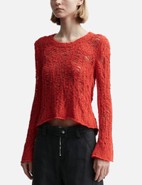 - Acne Studios - Loose Knit Sweater - Regular fit - Ribbed crewneck - Extra long sleeves - Loose knit - Hip length - Color: Red - Material: 88% Cotton, 12% Nylon - See more Knitwear and Clothing SIZING - Model wears size S - Model measures: Height 179cm, Chest 32”/81cm, Waist 23’’/58.42cm, Hip 35’’/88.9cm