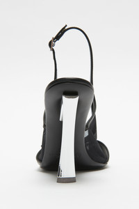 Slingback heels are adorned with a belt detail at the front and adjustable back closure with mesh detail. Complete with an open-toe with a curved high-heel construction. - Sling back - Adjustable belt closure - Mesh and front belt detail - Curved heel - Heel measurement: 100 mm - Style ID: FN-WN-SHOE000961 - Uppers: 78% Nylon, 14% Lamb leather, 8% Elastane, Soles: 60% Cow leather, 40% Thermoplastic polyurethane