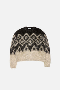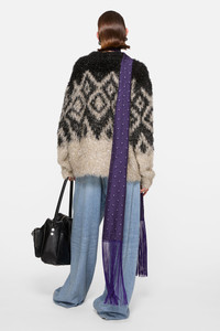 Crewneck sweater crafted from tinsel-inspired metallic fiber with a seasonal pattern. Finished with ribbed trims and cut to a relaxed fit at hip length. - Relaxed fit - Hip length - Relaxed sleeves - Metallic fiber - Seasonal pattern - Ribbed neckline, cuffs and hem - Model is 180 cm / 5'9 and wears a size S - Style ID: FN-WN-KNIT000917 - Shell: 45% Metallic fiber, 55% Nylon
