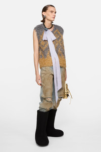 Knit vest with a V-neckline and seasonal pattern, crafted from a tinsel-inspired metallic blend with a soft, fuzzy handfeel. Finished with ribbed trims and cut to a relaxed fit at hip length. - Relaxed fit - Hip length - Metallic fiber - Seasonal pattern - V-neckline - Ribbed trim - Model is 178 cm / 5'8 and wears a size S - Style ID: FN-WN-KNIT000916 - Shell: 45% Metallic fiber, 55% Nylon
