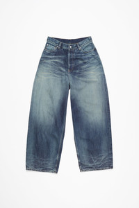 2023 jeans are cut to a super baggy fit with a mid waist, super wide leg and long length. Made from non stretch denim in a mid-blue wash. - Super baggy fit - Mid waist - Super wide leg - Long length - 5-pocket construction - Button fly - Model is 180cm/ 5'11 and wears a size 36 - Style ID: Acne Studios 2023F FN Broadway - Made with 80% organically grown cotton and 20% recycled cotton. - Shell: 80% Organic cotton, 20% Recycled cotton, Patch: 100% Cow leather