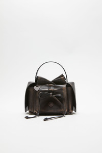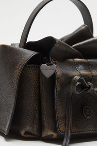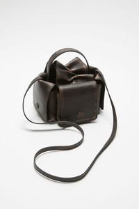 Mini bag features a multipocket construction, detailed with knotted lacing and jeans-inspired rivets on the pockets. Crafted from grained leather with a washed finish. Complete side flap pocket with a discrete magnetic closure, spacious interior and adjustable shoulder strap. - Multipocket - Brushed leather - Knot details - Jean-inspired rivets - Measurement: 12 cm; 17 cm; 14 cm - Strap length: 112 cm - Style ID: Multipocket Mini Vintage - Shell: 100% Calf leather, Lining: 50% Polyurethane, 50% Polyester