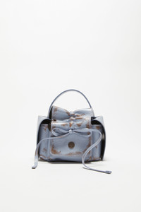 Mini shoulder bag features a multipocket construction, detailed with knotted lacing and jeans-inspired rivets on the pockets. Crafted from shiny crinkled leather with a brushed finish. - Multipocket - Brushed leather - Knot details - Jean-inspired rivets - Measurement: 12 cm; 17 cm; 17 cm - Shorter strap: 45 cm - Long strap: 112 cm - Style ID: Multipocket Mini Rev Brush - These bags are made from carefully selected high quality leather, treated to achieve a worn look and vintage feel. This leather will give each product an individual shade and the appearance of the product will change over time, especially around the edges. The worn-out look will not be a defect, it is supposed to look like that and is the nature of this leather. The finish of the leather may result in some color rubbing off on to lighter garments and upholstery. - Shell: 100% Calf leather, Lining: 50% Polyurethane, 50% Polyester