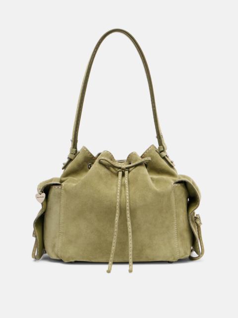 The Multipocket Mini bucket bag from Acne Studios is crafted from soft suede with knotted detailing for a signature touch. This stylish accessory features an adjustable shoulder strap, magnetic closure, and a spacious interior. Product Details - Material: calf leather (suede) - Lining: fabric - Made in Italy - Designer color name: Herb Green - Item color: green - Hardware color: antique silver - Adjustable top handle - Closure: drawstring top - Side pockets - Back slot pocket - Item number: P01046976 Size & Fit - Height 27cm-10.5" - Width 31cm-12" - Depth 14cm-5.5" - Adjustable shoulder strap - Max. length shoulder strap 98cm-38.5"