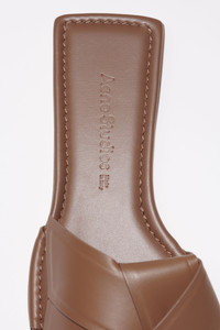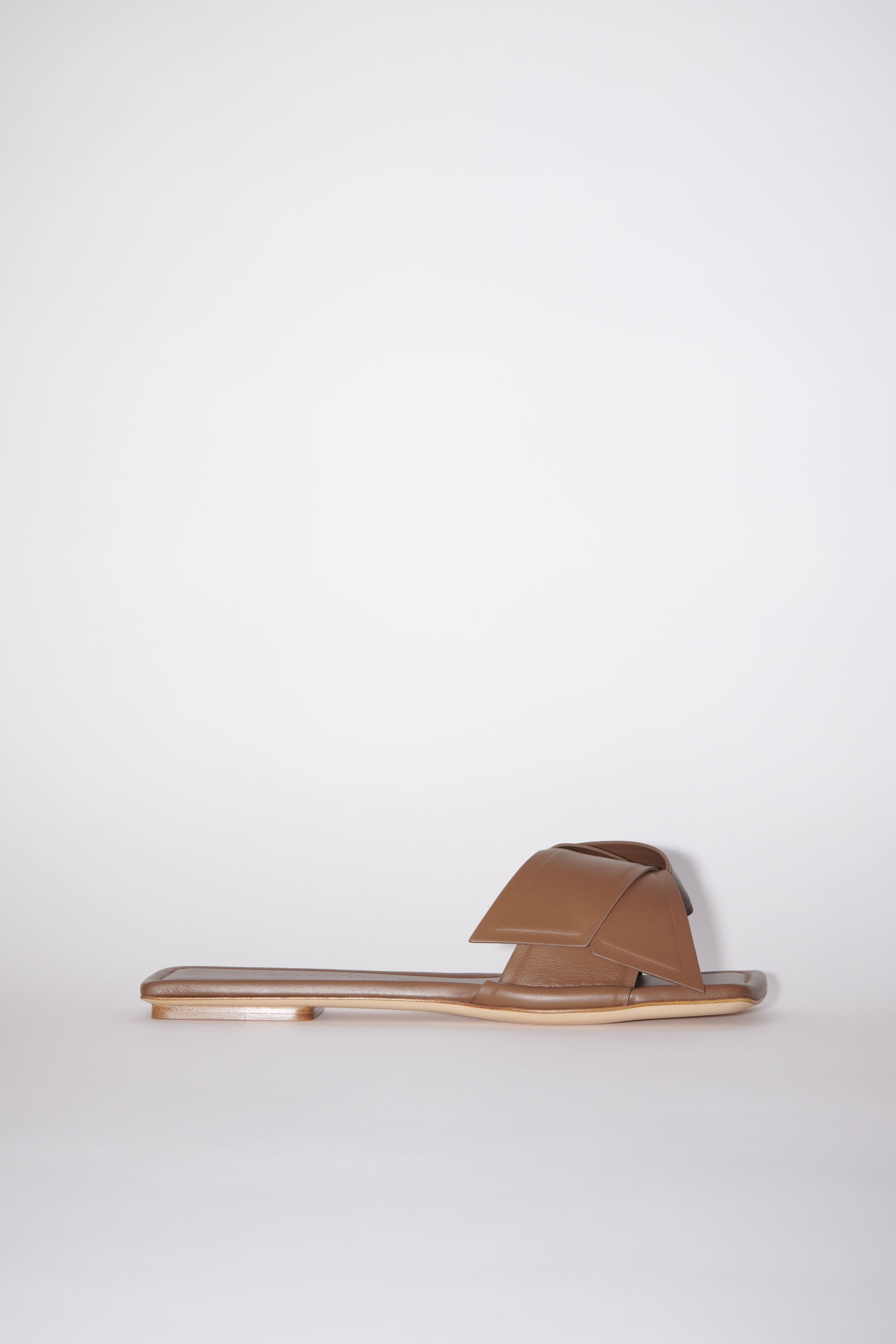 Sandal features a twisted musubi knot on the front, inspired by traditional Japanese obi sashes, crafted from leather. - Slip-on sandals - Front knot detail - Leather soles - Sole measurements: 5 mm - Style ID: FN-WN-SHOE000702 - Uppers: 100% Calf leather, Lining: 100% Lamb leather, Soles: 100% Calf leather