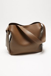 Midi shoulder bag is adorned with twisted musubi knots on each side, inspired by traditional Japanese obi sashes. Crafted from soft leather, detailed with an embossed Acne Studios logo. Completed with a middle zippered pocket compartment and a discrete magnetic closure. - Soft leather - Side knot detail - Shoulder strap - Interior zipper compartment pocket with branded lanyard - Gold-tone finishes - Embossed Acne Studios logo - Measurements: 35 cm; 35 cm; 16 cm - Strap measurement: 130 cm full length - Protectve dustbag included - Made in Italy - Style ID: Musubi Midi New R - Shell: 100% Calf leather, Lining: 100% Lamb leather