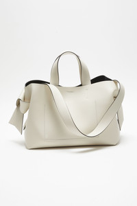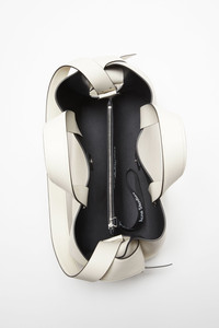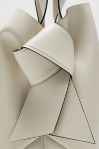Musubi tote bag is crafted from smooth matt leather, adorned with a musubi knot on each side, inspired by traditional Japanese obi sashes. - Side knot detail - Shoulder strap - Interior zipper compartment pocket with branded lanyard - Embossed Acne Studios logo - Snap button closure - Measurements: 26 cm; 34,5 cm; 15,5 cm - Crossbody strap: 130 cm length - Protective dustbag included - Made in Italy - Style ID: FN-WN-BAGS000386 - Shell: 100% Calf leather, Lining: 100% Lamb leather