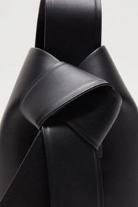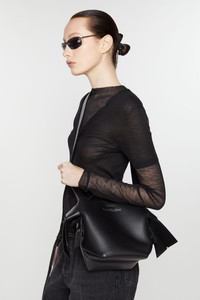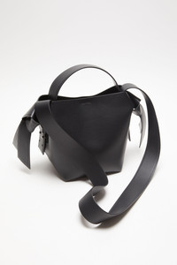 Mini shoulder bag is adorned with twisted musubi knots on each side, inspired by traditional Japanese obi sashes. Crafted from soft leather, detailed with an embossed Acne Studios logo. - Musubi knot - Debossed logo - Top handle - Detachable shoulder strap - Interior compartment - Snap button closure - Protective dustbag included - Made in Italy - Measurements: 21,5 cm; 20,5 cm; 15,5 cm - Strap measurements: 130 cm full length - Style ID: Musubi Mini R - Shell: 100% Calf leather, Lining: 100% Lamb leather