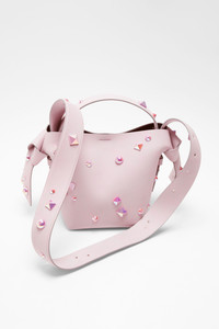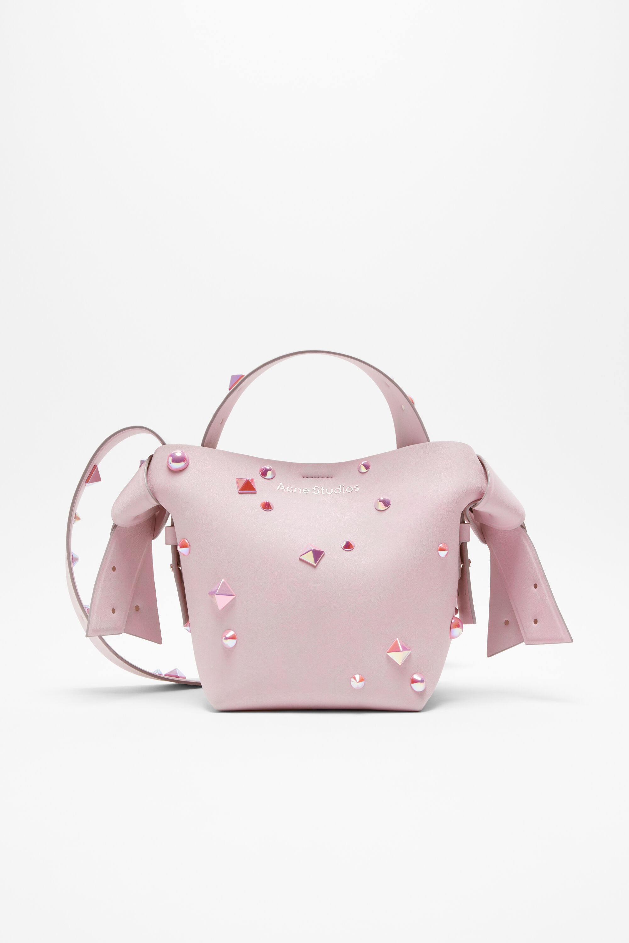 Mini shoulder bag made of leather with stud details. Adorned with a musubi knot on each side, inspired by traditional Japanese obi sashes. - Stud details - Side knot detail - Shoulder strap - Interior zipper compartment pocket with branded lanyard - Debossed Acne Studios logo - Snap button closure - Protective dustbag included - Made in Italy - Measurements: 21,5 cm; 20,5 cm; 15,5 cm - Strap measurements: 130 cm full length - Style ID: FN-WN-BAGS000393 - Shell: 100% Calf leather, Lining: 100% Lamb leather