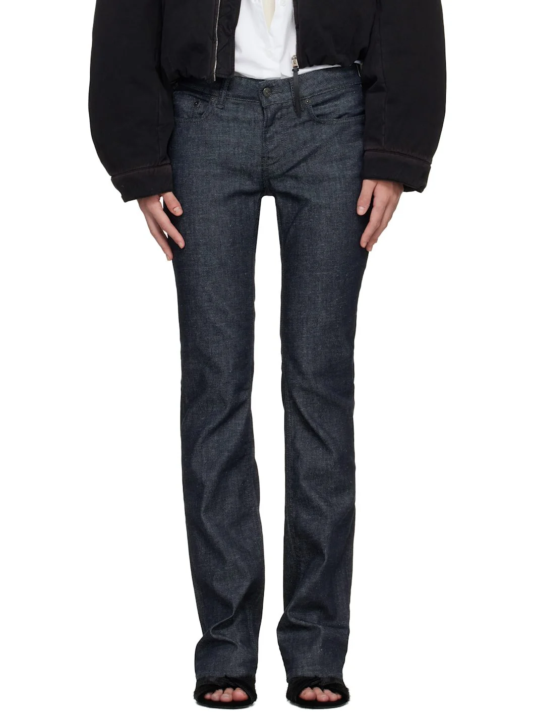 Stretch denim jeans. · Skinny-fit, tapered · High-rise · Belt loops · Five-pocket styling · Zip fly · Logo patch at back waistband · Logo-engraved gunmetal-tone hardware Supplier color: Dark Blue 62% cotton, 21% viscose, 15% polyester, 2% elastane. Made in Italy 261129F069053