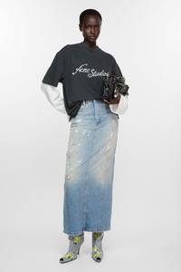 Skirt is cut to a regular fit with a straight shape, high waist and ankle length. Crafted from non stretch denim in a light blue wash. - Regular fit - High waist - Ankle length - Straight shape - Button fly - Model is 180 cm / 5′11 and wears a size 36 - Style ID: FN-WN-SKIR000644 - Shell: 60% Cotton, 40% Lyocell